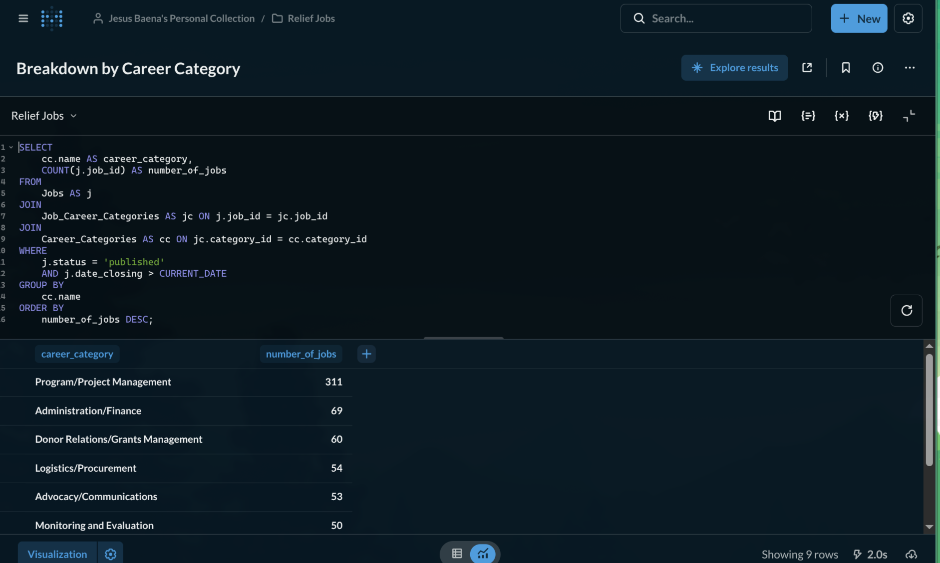 I used it extensively for the HUMANITARIAN JOBS DASHBOARD, it offers great embedding options.